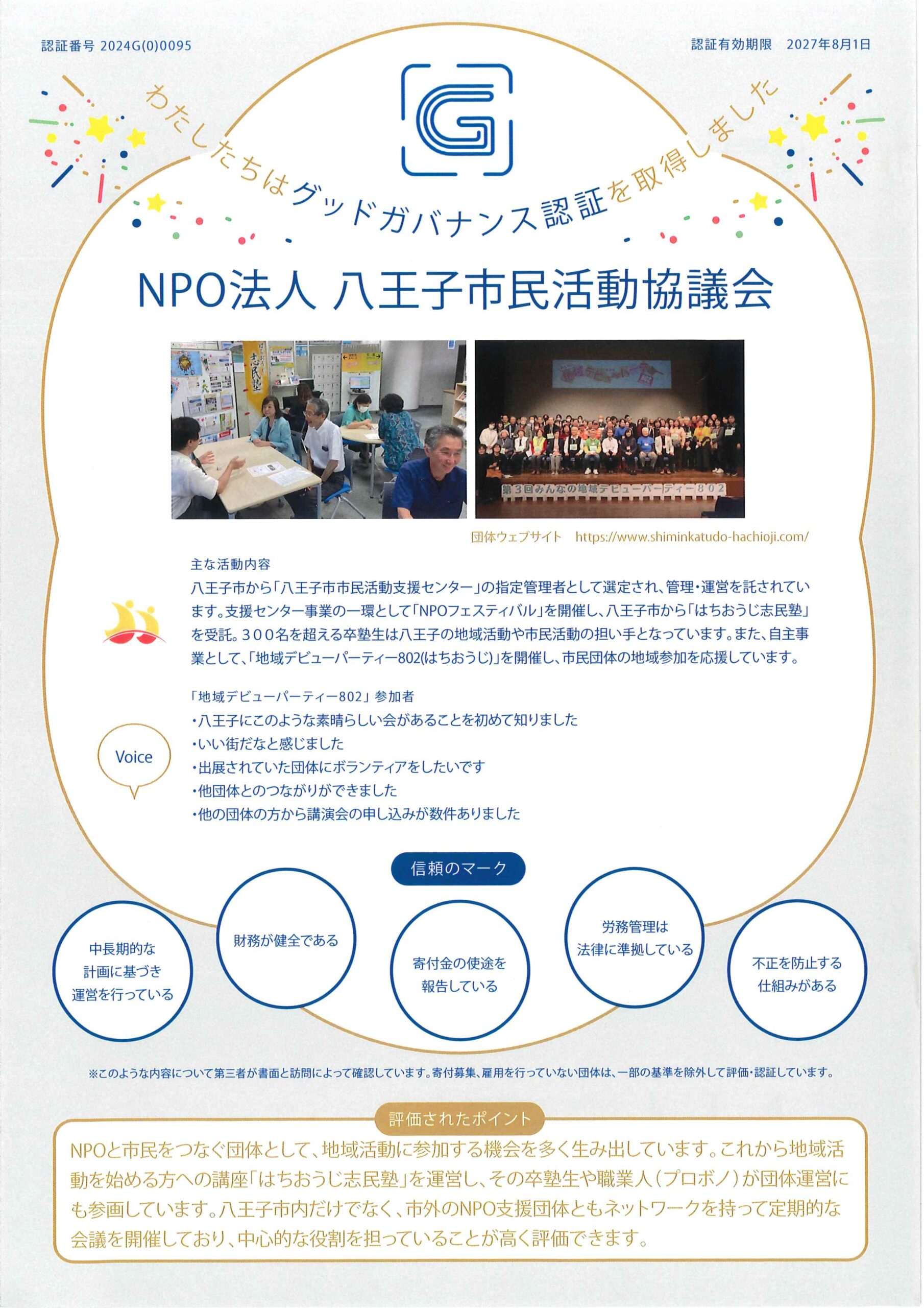 【NPO八王子市民活動協議会が「グッドガバナンス認証」取得】