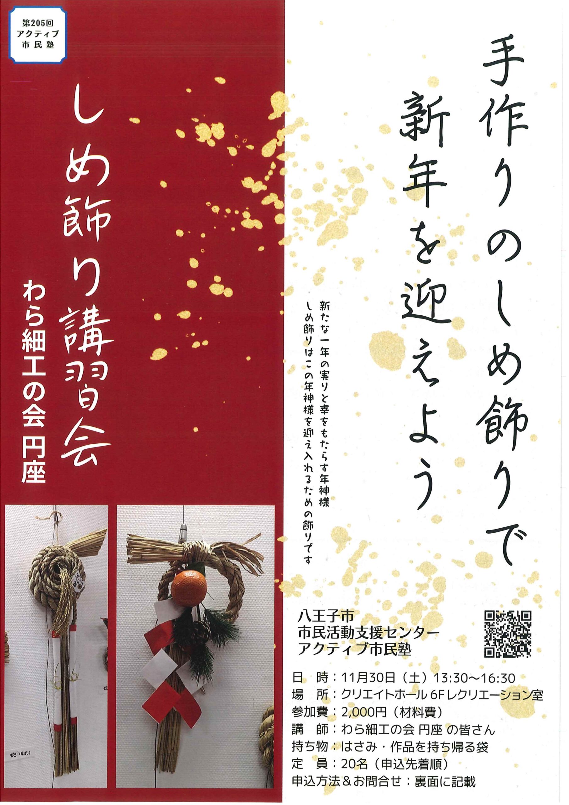 【手作りのしめ飾りで新年を迎えよう「しめ飾り講習会」】