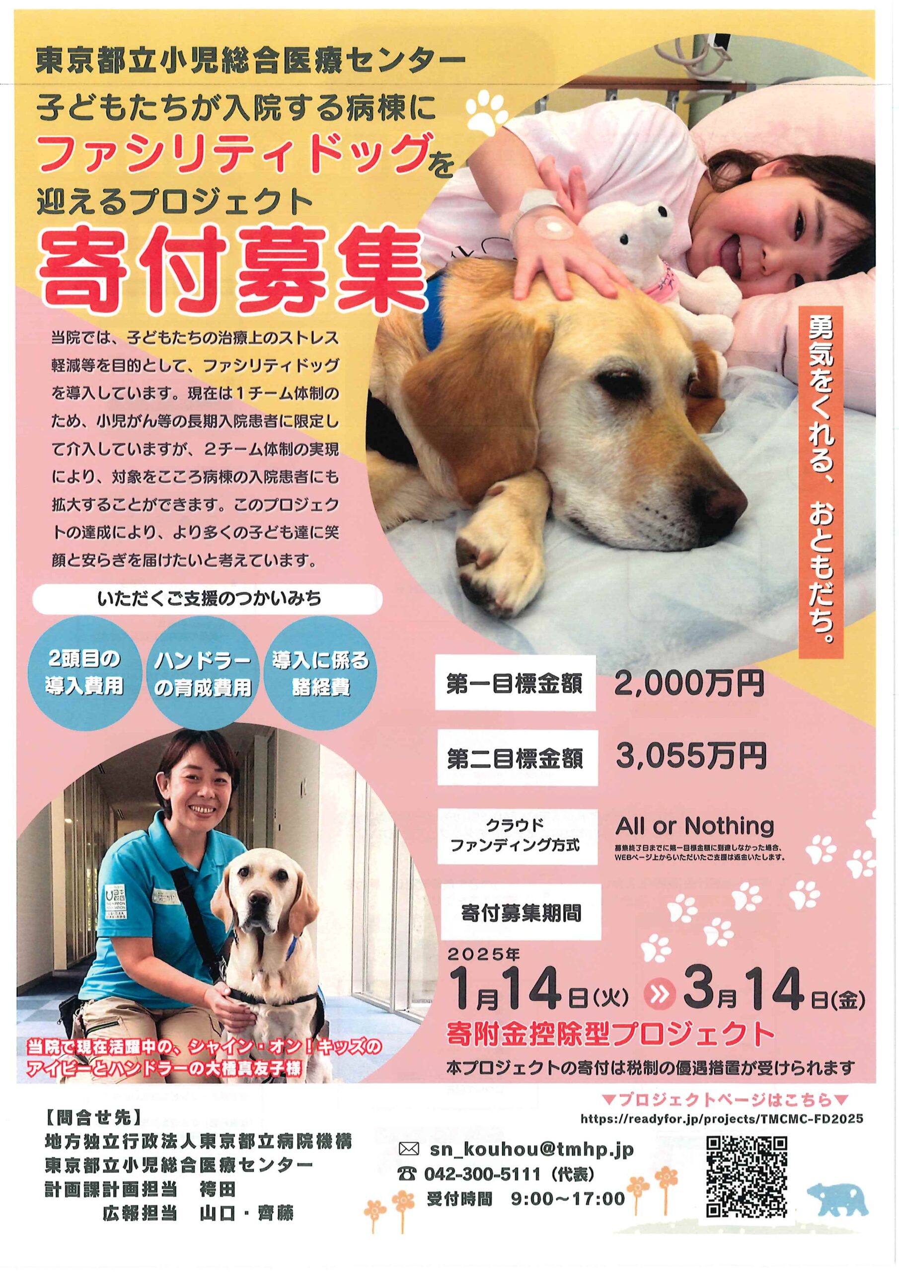 【東京都立小児総合医療センター 子どもたちが入院する病棟にファシリティドッグを迎えるプロジェクトの寄付募集】