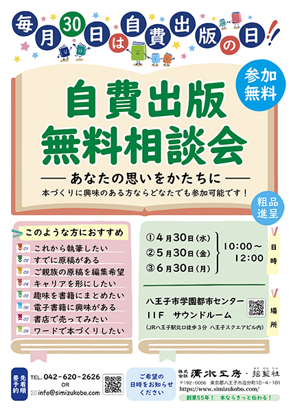 【毎月30日は自費出版の日「自費出版無料相談会」】