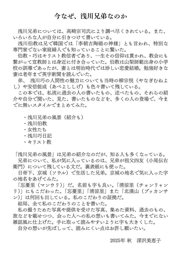 2025/11/05 【新刊『韓の国に生きた兄弟を韓の国は忘れない』】 独自の視点で見つめ直した浅川伯教・巧兄弟――。 浮かび上がる愛の人生……。 日韓交流の進化を願う人にとって必読の書! ・深沢美恵子著、A4判160P、フルカラー ・11月1日発売、税込2200円、揺籃社刊 #浅川伯教 #浅川巧 #揺籃社 #浅川兄弟 アマゾンはコチラ↓ https://www.amazon.co.jp/dp/4897085373/