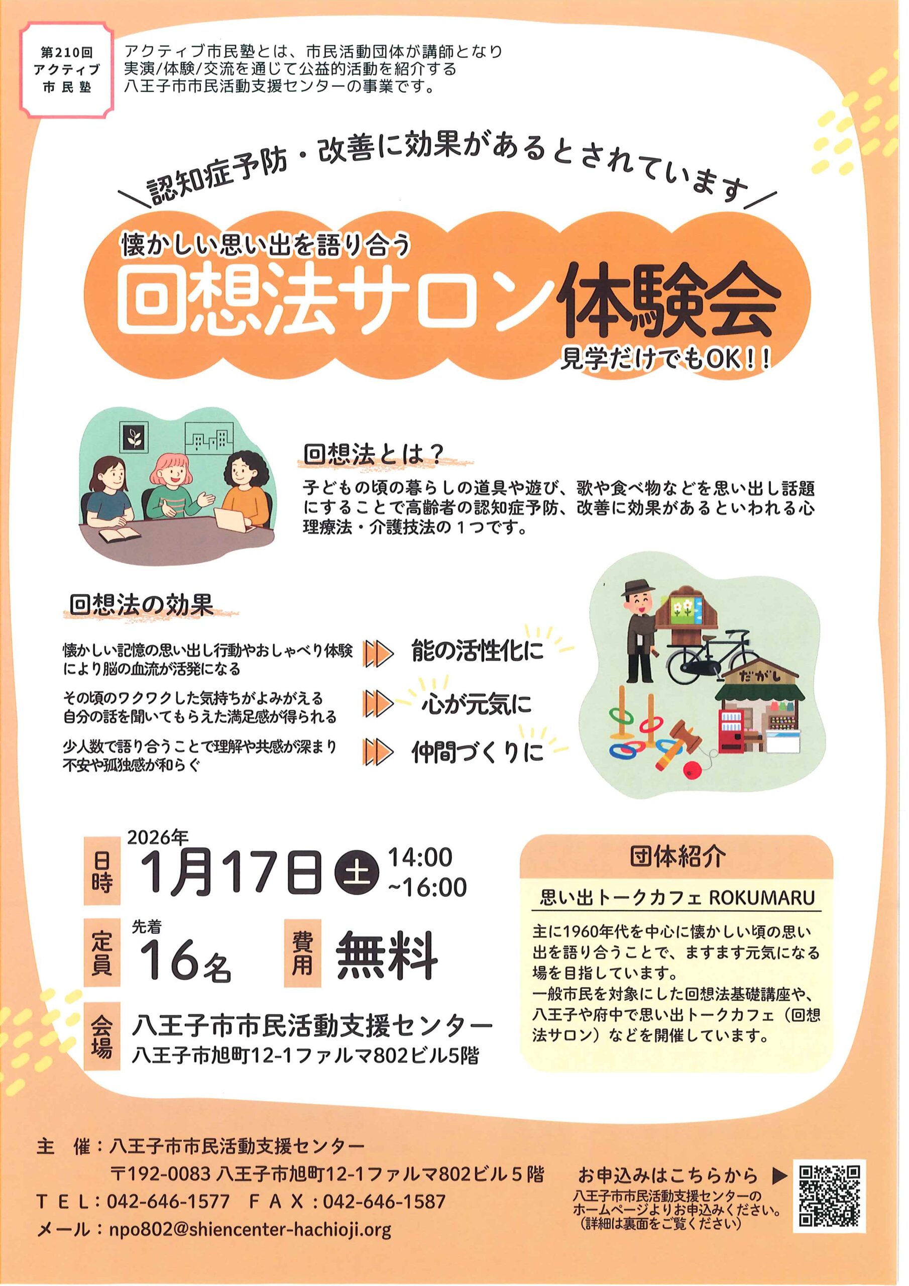 【懐かしい思い出を語り合う 回想法サロン体験会】