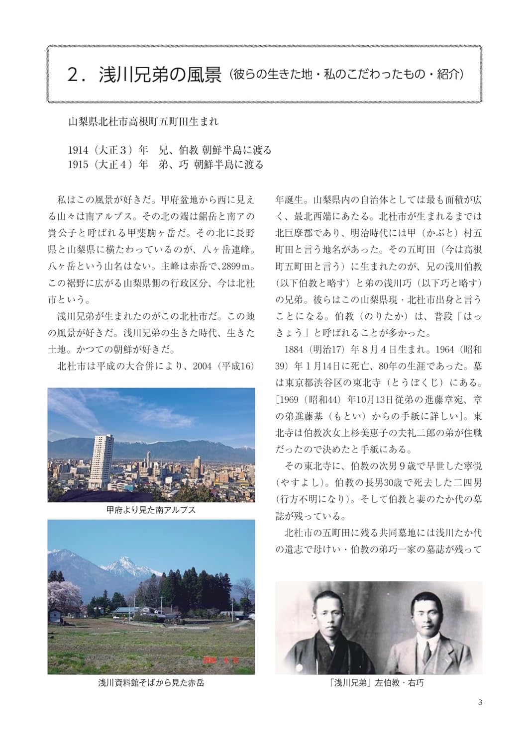 深沢美恵子さん著『韓の国に生きた兄弟を韓の国は忘れない―浅川伯教・浅川巧―』。