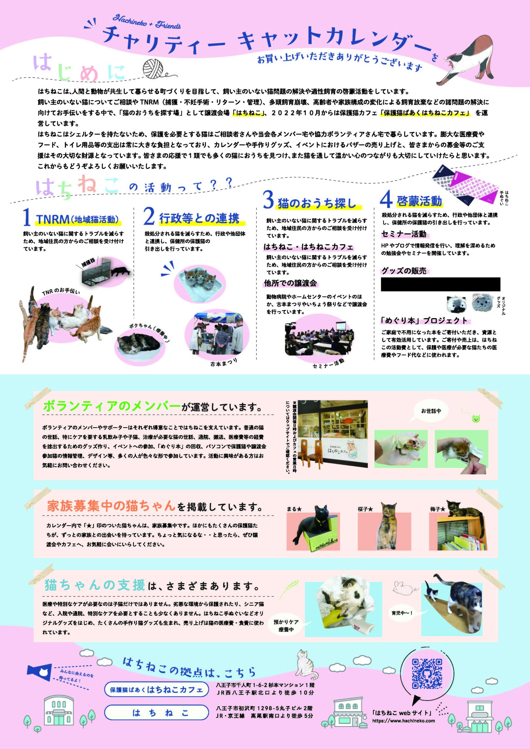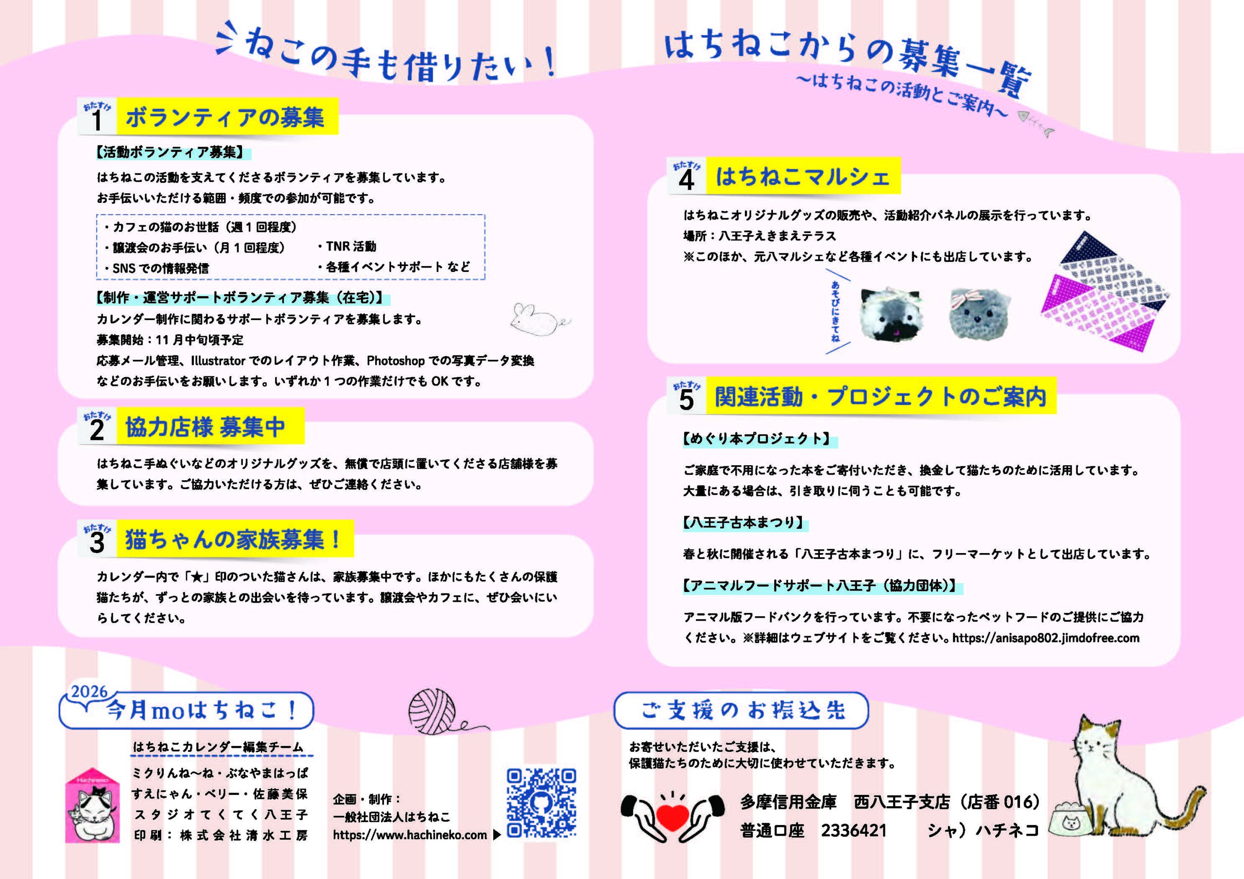 はちねこが運営する「保護猫ぱあく はちねこ」やイベントなどで販売するほか、当社でも取り扱っておりますので、皆さまのお力添えをいただけましたら幸いです(月毎のA4サイズ28Pで1部1200円税込)。