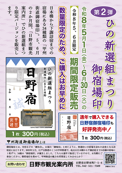 ひの新選組まつりに合わせた限定御宿場印、数量限定のためご購入はお早めに!
